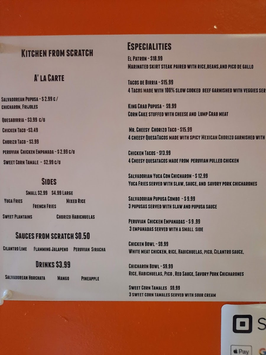 From a reviewer’s perspective, the menu at Taste Of Latin America offers a satisfying variety of flavorful, casual Latin dishes that balance comfort and authenticity. The selection starts strong with items like the Single Chicken Empanada, followed by a diverse taco lineup including Pork Tacos, Chicken Tacos, Steak Tacos, and the indulgent Cheesy Chorizo Tacos, alongside crowd favorites like Quesabirrias. The bowls section-featuring options such as the Chicken Bowl, Yuca Con Chicharron, Steak Bowl, Shrimp Bowl, and Chorizo Bowl-adds hearty, well-rounded choices. Burrito lovers can enjoy staples like the Chicken Burrito, Birria Burrito, Steak Burrito, and Chorizo Burrito, while lunch specials like the Birria Quesadilla Lunch, 2 Chicken Empanadas / Rice, and 2 Tacos And Rice With One Sauce provide great value. Traditional touches like 2 Pupusas and the Birria Pupusa stand out, especially when paired with sides such as Green Taco Sauce, Rice L, Sour Cream, and French Fries. Drinks like Coke Glass, Sangría, and fruity sodas such as Mandarine Orange Soda, Pineapple Jarritos, and Grapefruit Jarritos round out the experience. The highlight, however, is the rich birria-focused offerings, including Birria Tacos, Birria Quesadilla, and even Birria Ramen, which give the menu a unique and memorable edge.